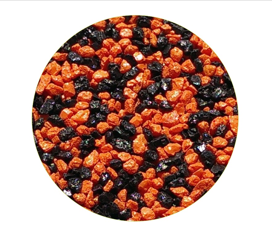 Цветная мраморная крошка 2-5 мм ЧЕРНО-ОРАНЖЕВАЯ (блестящая) |